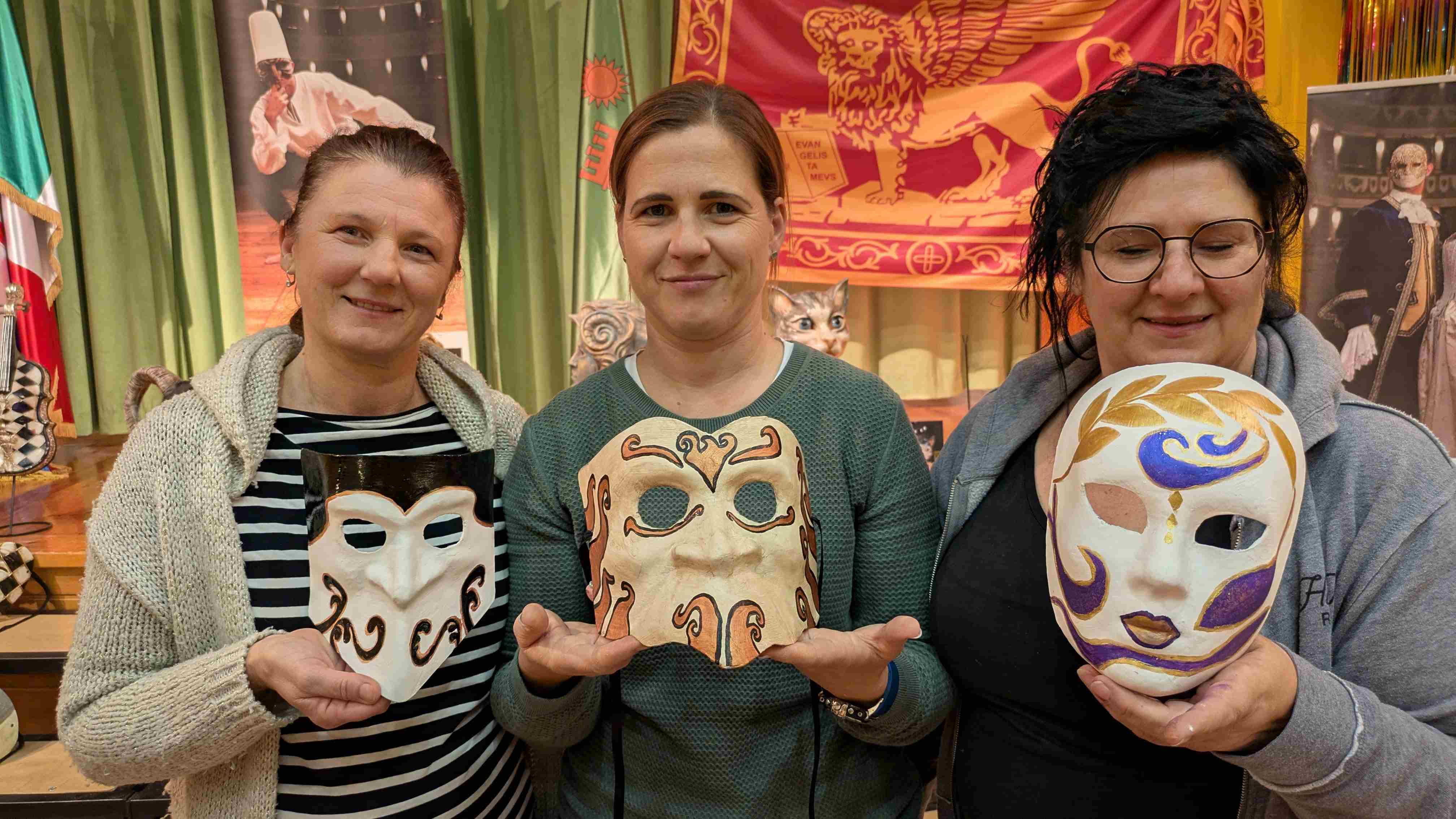 Ad Albona, nella Comunità “Giuseppina Martinuzzi”, il legame con Venezia si è intrecciato alla memoria urbana e simbolica della città. Due giornate di lavoro creativo hanno coinvolto generazioni diverse, mentre la mostra ha esibito una collezione di opere di alto artigianato veneziano e le maschere nate dal laboratorio, testimoniando così un dialogo culturale vivo e partecipato.
