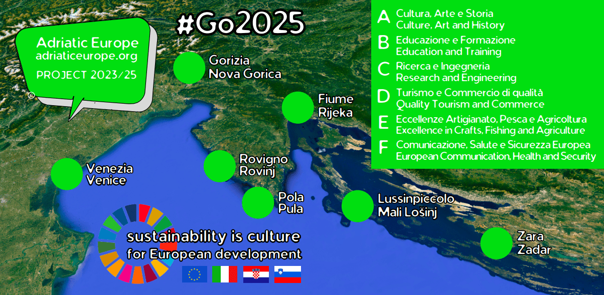 Culture at 360ยฐ guided by the 17 goals of the United Nations 2030 Agenda for Prosperity. The project is carried out between sea and land by 2025 in view of “Nova Gorica and Gorizia European Capital of Culture”. The project starts from Venice and involves the cities of Rovinj, Pula, Mali Loลกinj, Zara, Fiume and Nova Gorica/Gorizia.